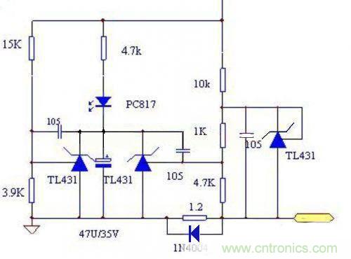 缺點(diǎn):由于TL431是2.5V基準(zhǔn),故恒流取樣電路的損耗極大,不適合做輸出電流過大的電源。而此電路的致命缺陷是不能空載,故不適合做外置式的LED電源,所以下面我們對線路的一些缺陷進(jìn)行了改進(jìn)。