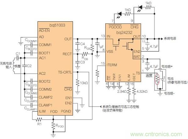 圖4:適合低功耗應(yīng)用的無(wú)線電源接收器(帶電池充電器)