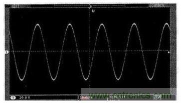 根據(jù)以上思想試制一臺(tái)400 W的樣機(jī),采用IRF3205作為推挽升壓的功率管,HER307作為整流二極管,全橋逆變功率管則采用IRF840.前級升壓的PWM波頻率設(shè)置為20 kHz,后級SPWM波的頻率設(shè)置為18 kHz,輸出濾波電感L為1 mH,輸出濾波電容C為4.7μF.實(shí)際測試正弦交流輸出電壓精度為220 V±1%,頻率精度為50 Hz±0.1%,THD小于1.5%,逆變效率大于87%,其滿負(fù)載時(shí)的試驗(yàn)波形如圖7所示(輸出經(jīng)20 kΩ/100 kΩ電阻分壓測到)。