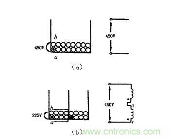 (a)一般電源變壓器初次級分段繞制后的效果(b)電源變壓器初次級線圈分兩部分繞制后的效果