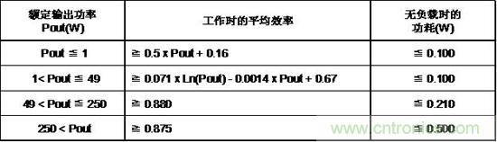 表2.DOE CEC 6級外部電源能效標準AC/DC電源(輸出電壓< 6V)