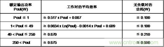 表1.DOE CEC 6級外部電源能效標準AC/DC電源(輸出電壓≧ 6V)