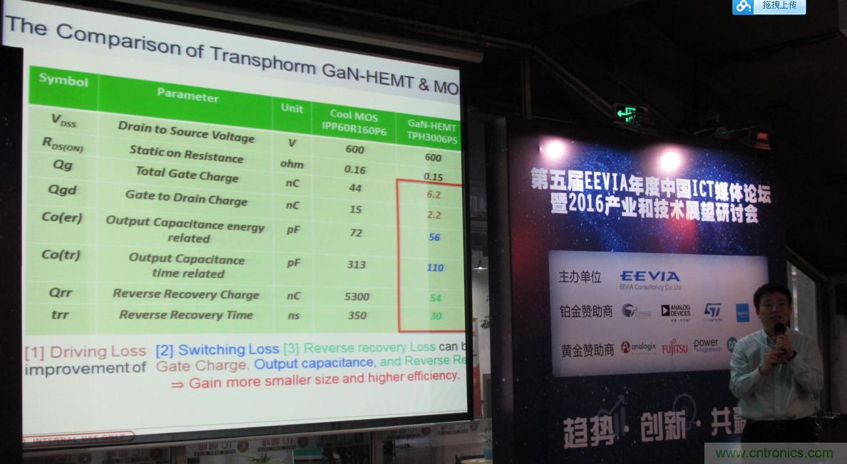 【導(dǎo)讀】氮化鎵技術(shù)擁有低功耗、小尺寸等特性設(shè)計(jì)上的獨(dú)特優(yōu)勢(shì),其優(yōu)勢(shì)以及成熟規(guī)?;a(chǎn)能力使其近年來在功率器件市場(chǎng)大受歡迎。在前不久舉辦的EEVIA第五屆ICT技術(shù)趨勢(shì)論壇上,這個(gè)主題受到國(guó)內(nèi)媒體的集體“圍觀”。