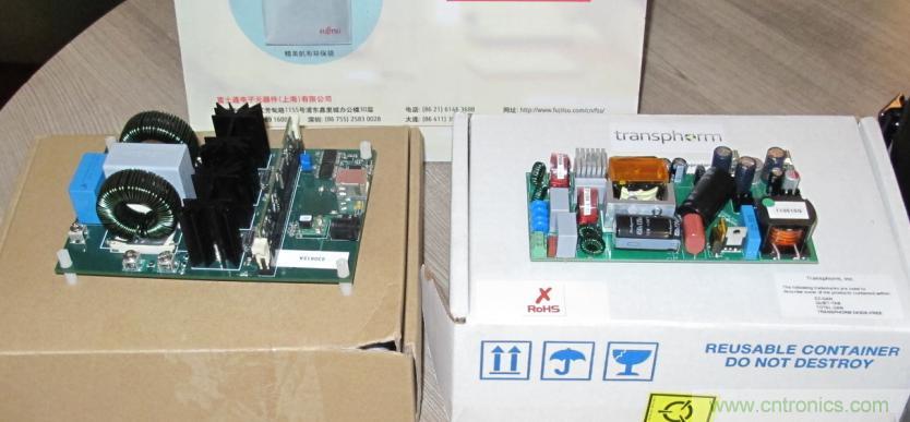 在演講現(xiàn)場(chǎng),富士通電子展示了兩款基于HEMT器件的電源模塊方案。“我們的PFC+LLC電源與類似的競(jìng)爭(zhēng)方案相比,電路板尺寸可以縮減45%,在滿載和10%的負(fù)載下,我們可以分別提高1.7%和3%的效率。對(duì)于很多效率要求苛刻的應(yīng)用來說,這是一個(gè)非常大的提升。”Eric指出。
