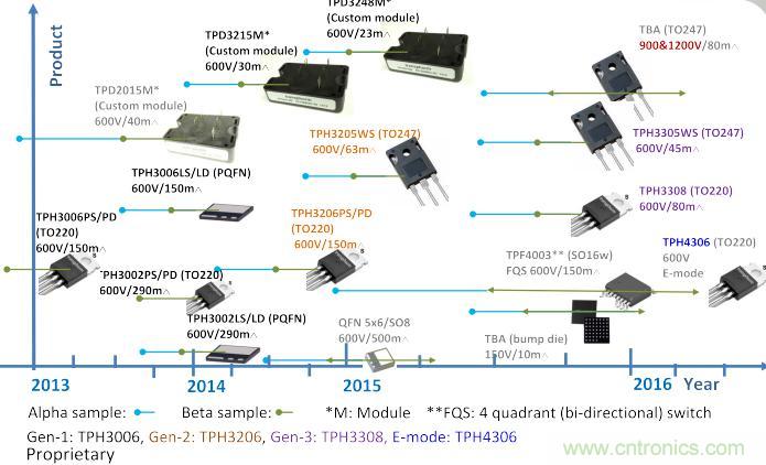 Transphorm依據(jù)基本發(fā)展路線圖進(jìn)行開發(fā),首先是合格的600 V器件和1000V器件。Transphorm的研究和開發(fā)還在繼續(xù),現(xiàn)在推出了600V的擴(kuò)展系列,采用更低的R(ON)設(shè)備和高功率封裝(含模塊),然后是繼150V器件之后的1200 V器件。據(jù)Eric透露,今年會(huì)推出900V和1200V的產(chǎn)品,低壓方面會(huì)提供150V的產(chǎn)品。據(jù)悉,未來Transphorm還將推出代替Cascode的E-Mode創(chuàng)新結(jié)構(gòu)技術(shù),將會(huì)把當(dāng)前結(jié)構(gòu)中存在的不利因素解決掉,實(shí)現(xiàn)更卓越的功率器件性能。將提供更大功率的產(chǎn)品,從2014年推出第一顆TO240,電流從30、40,逐步往60、70、80的方向發(fā)展。