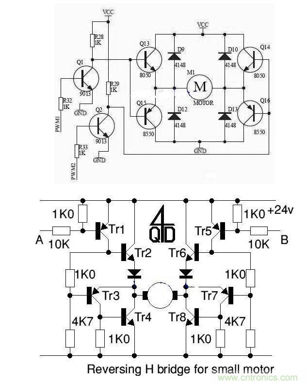 附兩張分立元件的H橋驅(qū)動(dòng)電路: