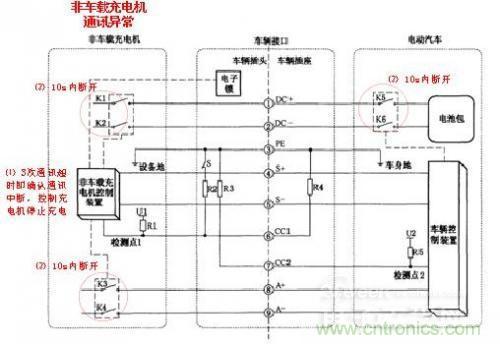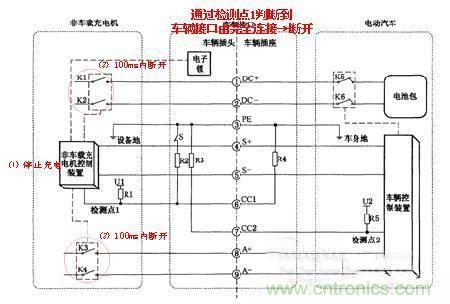 1)在充電過程中,非車載充電機控制裝置通過對檢測點1的電壓進行檢測,如果判斷