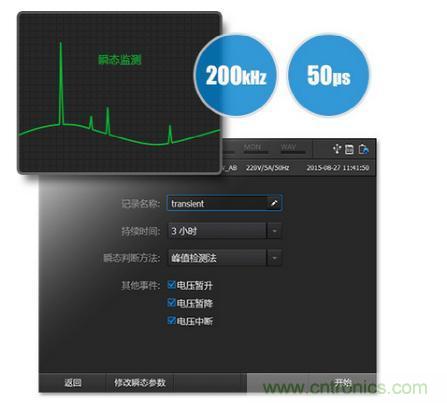 致遠電子E6500電能質(zhì)量和能效分析儀采樣采用芯片,200kHz高速定頻采樣,可捕獲最短50μs波形瞬間脈沖,同時支持瞬態(tài)事件無損錄波功能,讓用戶發(fā)現(xiàn)難以察覺的電能質(zhì)量驟變問題。