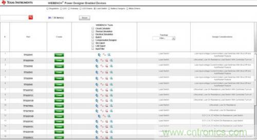 圖1:WEBENCH負(fù)載開關(guān)設(shè)備列表