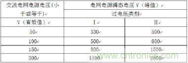 1、根據(jù)交流電網(wǎng)電壓有效值和過(guò)電壓類(lèi)別確認(rèn)交流電網(wǎng)電源瞬態(tài)電壓(由附錄Z和表2J確定);