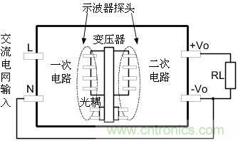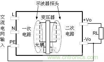 假如開(kāi)關(guān)電源輸入只有L、N則測(cè)試圖如下圖2所示: