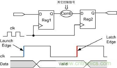(2)捕獲沿(Latch Edge):后記寄存器捕獲數(shù)據(jù)對應的時鐘沿,是時序分析的終點。相對于launch Edge通常為一個時鐘周期,但不絕對,如多周期。