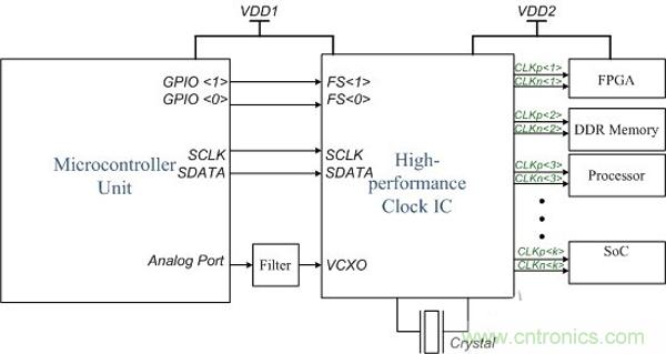 圖2.微控制器 - 高性能時(shí)鐘接口電路