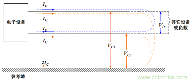 3. 器件上的電路走線與大地之間有電位差,這樣電路走線上會(huì)產(chǎn)生共模干擾電流。