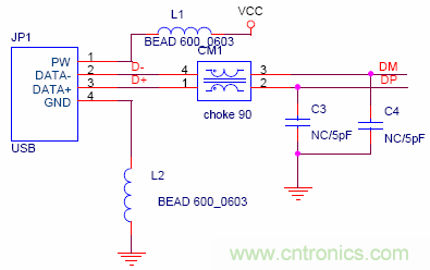 USB 高速運(yùn)行會(huì)在DM/DP信號(hào)線上產(chǎn)生很強(qiáng)的共模干擾
