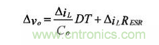 輸出濾波電容的選擇應(yīng)考慮工作頻率、輸出電流紋波、輸出電壓紋波和能量儲存能力。電解電容的等效串聯(lián)電阻(ESR)會隨開關(guān)工作頻率的變化而變化。輸出電壓的紋波由以下公式給出: