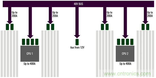 圖字:48V總線;高達200A;來自12V的輔助電源