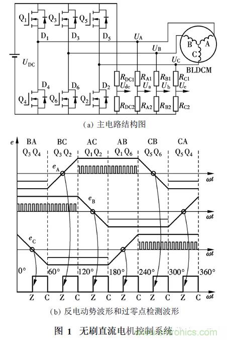 反電動勢過零點檢測方法簡單準確,使用軟件算法判斷反電勢過零點. 硬件電路只要選擇阻值和功率都合適的電阻用于分壓,不需要重構(gòu)電機中心點,也不需要低通濾波器,信號沒有相位延時,也不采用比較器來檢測過零點. 硬件電路結(jié)構(gòu)簡單, 適合低成本應用.
