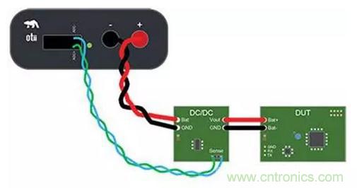 Otii工具還支持使用SENSE+和SENSE-輸入,通過(guò)四端子檢測(cè)方法測(cè)量輸入和輸出電壓。這里不討論這種方法,原因是電流相當(dāng)?shù)?,而且連接Otii所用的電纜很短,電阻很小。
