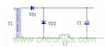 DC/DC 的整流二極管和續(xù)流管的反向恢復(fù)電流會導(dǎo)致二極管的反向電壓出現(xiàn)很高的電壓尖峰,下圖 7 是正激電路的輸出濾波電路。