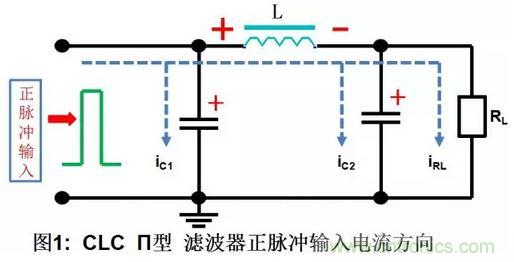 a.輸入正脈沖時(shí),先給C1充電,充電電流為ic1,迅速充到脈沖的峰值電壓Vi,同時(shí)電感器L中也有線性增長(zhǎng)的電流,并在L中儲(chǔ)存了磁能,隨著電流的增長(zhǎng),儲(chǔ)存的磁能越來越多,電容器C2通過電感L也充上了電壓,充電電流為ic2,C2和C1上的電壓基本相等,負(fù)載RL中的電流IRL也是由輸入脈沖供給。
