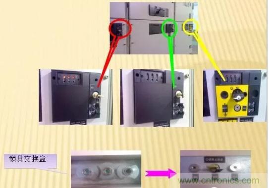 當(dāng)需要斷開出線柜時,先將N電源柜、E電源柜停電,拔出KEY1、KEY2鑰匙,然后將鑰匙插入鎖具交換盒里,取出KEY3鑰匙插入出線柜聯(lián)鎖的鑰匙孔,方能操作出線柜。合出線柜的操作步驟則相反。