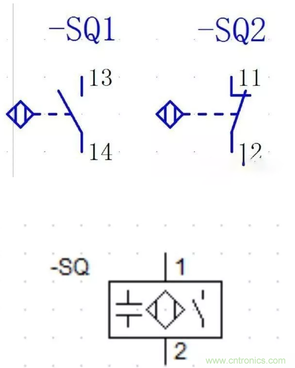 它有感應(yīng)頭、高頻振蕩器、放大器和外殼組成。接近開(kāi)關(guān)實(shí)物圖和圖形文字符號(hào)如下: