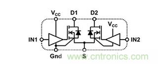 圖5:EPC 的 eGaN 集成驅(qū)動(dòng)器 IC 包含兩個(gè)功率晶體管,各配有相應(yīng)的優(yōu)化型柵極驅(qū)動(dòng)器。(圖片來源:EPC)