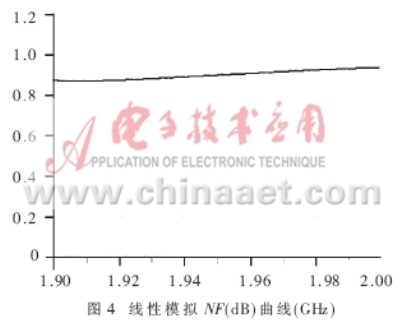 混合耦合器2A1306-3的模型是基于四端口的Touchstone線性s參數(shù)文件。它與微帶線部分、電路平衡放大器的輸入輸出部分及負(fù)載阻抗構(gòu)建起放大器的完整模塊結(jié)構(gòu)。運(yùn)行模擬軟件,就要給出系統(tǒng)的仿真結(jié)果值,以表明所需結(jié)構(gòu)的性能。模擬得到的NF、增益(G)。輸入輸出回波損耗結(jié)果如圖4、圖5、圖6所示。這些圖表示了LNA在工作頻率范圍的性能。
