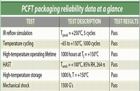 PCTF工藝還可增強(qiáng)器件的可靠性,由于采用了銅鍍層的覆蓋物,大型的無引腳SMT器件,通過可靠的焊接可以直接裝在PCB板上。典型的封裝尺寸為0.16平方英寸到1.00平方英寸。器件通常采用4.5×4.5英寸的多組包裝。其元件組裝、芯片粘合、鍵合甚至測試、包裝等流程可以實(shí)現(xiàn)全自動化。