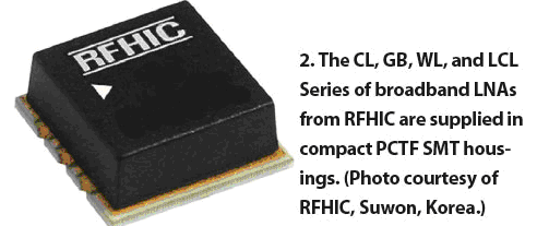 韓國著名射頻微波模塊廠商RFHIC公司,已經(jīng)開始使用PCTF技術(shù)生產(chǎn)其低噪聲放大器、增益模塊、寬帶低噪聲放大器(包括其CL、GB、WL、LCL系列產(chǎn)品)(圖2)。這些產(chǎn)品體積小(10.16×10.16X 4 mm)、價(jià)格低適于大批量生產(chǎn)。得益于PCTF技術(shù)的散熱特性和可靠性,該公司的寬帶低噪聲放大器產(chǎn)品能提供有益的高增益、低噪聲性能。對于這些應(yīng)用,PCTF技術(shù)具有承受高溫、散熱性好、易于制造以及可靠性高等優(yōu)點(diǎn)。