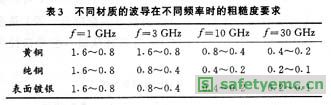 波導(dǎo)表面粗糙度越低,加工難度越大,制造成本也越高。為了降低成本、提高經(jīng)濟(jì)效益,在不同頻段,控制波導(dǎo)管表面粗糙度的要求是不同的。頻率越高,波長越小,粗糙度值要求也越低。表3為實(shí)際工作中總結(jié)出的銅、黃銅、鍍銀波導(dǎo)在不同頻率時(shí)的粗糙度要求,可作為設(shè)計(jì)時(shí)的依據(jù)。