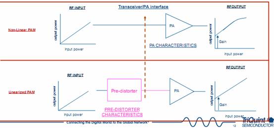 3G/4G時代對PA的要求更高,包括更線性的放大倍數(shù),更高的峰谷比率,更高的效率。因此下一代的趨勢是極化的EDGE向線性的EDGE轉(zhuǎn)移。一是它可以把相位和輔助信號合成在一起,從控制角度來看也相對簡單,未來也將走向多模多頻。