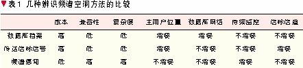 認(rèn)知無(wú)線(xiàn)電(CR)概念由Joseph Mitola博士提出,其主導(dǎo)思想是實(shí)現(xiàn)伺機(jī)的動(dòng)態(tài)頻譜接入,即非授權(quán)用戶(hù)(也稱(chēng)次用戶(hù)或認(rèn)知用戶(hù))通過(guò)檢測(cè),機(jī)會(huì)性地接入已分配給授權(quán)用戶(hù)(或主用戶(hù)) 但暫時(shí)很少使用甚至未被使用的空閑頻段,一旦主用戶(hù)重新接入該頻段,次用戶(hù)迅速騰出信道。這種技術(shù)需解決的首要問(wèn)題就是如何快速準(zhǔn)確地獲取授權(quán)頻譜的使用情況,目前主要有3類(lèi)解決方案:建立數(shù)據(jù)庫(kù)檔案、傳送信標(biāo)信號(hào)和頻譜感知。表1從多個(gè)方面對(duì)3種方案進(jìn)行了比較,其中頻譜感知方案因具有建設(shè)成本低、與現(xiàn)有主系統(tǒng)的兼容性強(qiáng)等突出優(yōu)點(diǎn),得到了大多數(shù)研究學(xué)者的認(rèn)同;另外兩種由于受到政治、經(jīng)濟(jì)等因素的制約而很難實(shí)現(xiàn),對(duì)其研究相對(duì)較少。