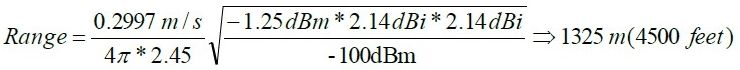 例如,如果使用弗里斯方程式計(jì)算一個(gè)2.45GHz 無線鏈路的最大通信距離,其發(fā)射功率為-1.25dBm,接收靈敏度為-100dBm 以及兩個(gè)天線增的益都是2.14dBi。需要注意的是,2.14dBi 是偶極天線的理論增益,而考慮損耗時(shí)一般達(dá)不到這一值。