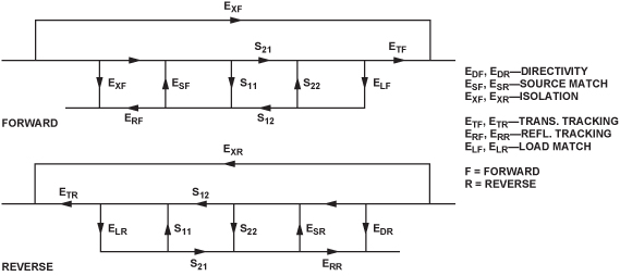 圖4顯示了雙端口系統(tǒng)的完整12項誤差模型及其系統(tǒng)性影響和誤差源。測量頻率范圍會影響校準(zhǔn)選擇:頻率越高,則校準(zhǔn)誤差越大。隨著更多誤差項變得顯著,必須更換校準(zhǔn)技術(shù)以適應(yīng)高頻影響。
