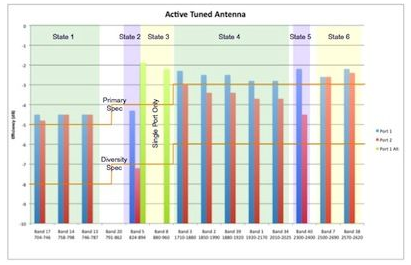 圖5:覆蓋所有3G/ 4G應(yīng)用,且具有兩個(gè)MIMO天線端口的狀態(tài)調(diào)諧式iMAT結(jié)構(gòu)