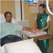 佛羅里達(dá)州那不勒斯NCH醫(yī)療保健系統(tǒng)放射實(shí)習(xí)生正在展示便攜式X光機(jī)的無線DR成像板能夠根據(jù)需要進(jìn)行最優(yōu)的調(diào)整