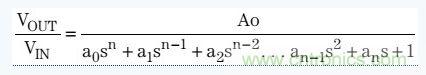 巴特沃茲濾波器傳輸函數(shù)包括所有極點(diǎn),并且沒有零,其表達(dá)式如下: