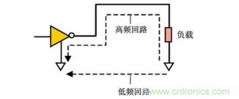 高速電路中,對(duì)于一個(gè)特定的電流返回路徑,電感要遠(yuǎn)比其電阻重要。高速的返回電流沿著電感最小路徑前進(jìn),而不是電阻最小路徑。電感最小的返回路徑就緊貼在一個(gè)信號(hào)導(dǎo)體下面,它使輸出電流路徑和返回電流路徑之間的總面積最小。返回信號(hào)的電流密度隨著其相互距離增加的平方而下降。