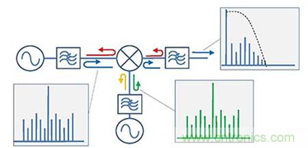 互調(diào)抑制一直是衡量混頻器設(shè)計(jì)的目標(biāo)之一?;诋?dāng)前半導(dǎo)體工業(yè)的發(fā)達(dá),我們可以通過利用高動(dòng)態(tài)范圍的場(chǎng)效應(yīng)管成功實(shí)現(xiàn)了不同水平的互調(diào)抑制。然而,即使最好的混頻器也會(huì)在它的每個(gè)端口產(chǎn)生一些互調(diào)產(chǎn)物,并且這些互調(diào)產(chǎn)物會(huì)成為影響到周邊射頻鏈路中的因素。當(dāng)傳統(tǒng)濾波器要濾除這些互調(diào)產(chǎn)物時(shí),他們會(huì)被完全反射回到混頻器,并與基波信號(hào)重新合成而產(chǎn)生大量的假信號(hào)。這些假信號(hào)會(huì)因?yàn)榭赡苈湓谒璧念l帶內(nèi)而通過濾波器輸出到中頻,進(jìn)而限制了整個(gè)系統(tǒng)的動(dòng)態(tài)范圍。