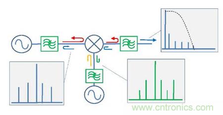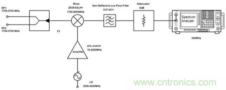 以下將組成測(cè)試電路對(duì)比傳統(tǒng)濾波器和無反射式濾波器分別配對(duì)相同混頻器的性能。
