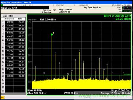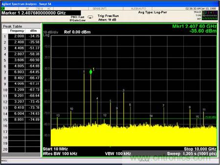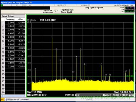 測(cè)試2:單輸入信號(hào)的輸入頻譜測(cè)試