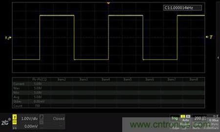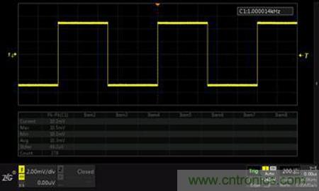 圖1 2mV/div檔位下測試10mVpp的方波峰峰值誤差