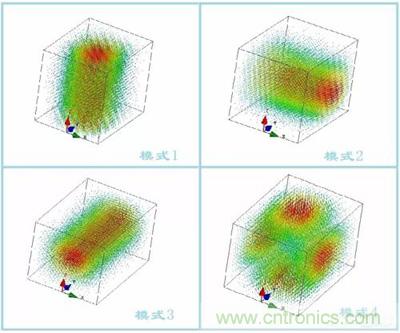 3.1 多模濾波器的設計,通帶電性能的評估,和單模的評估是一樣的,只是在Q值的評估中,多模的Q值是要高于單模的,這個可以根據(jù)本征模的仿真中觀察到。下圖為一個雙腔4模濾波器的原理評估仿真結果: