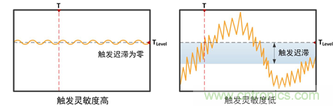 圖10 靈敏度高低對(duì)信號(hào)觸發(fā)的影響