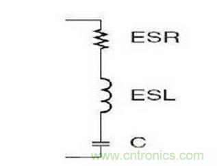 圖中ESR是電容的串聯(lián)等效電阻,ESL是電容的串聯(lián)等效電感,C才是真正的理想電容。ESR和ESL是由電容的制造工藝和材料決定的,沒法消除。那這兩個東西對電路有什么影響。ESR影響電源的紋波,ESL影響電容的濾波頻率特性。