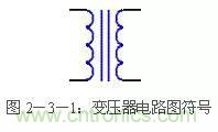 通常直流穩(wěn)壓電源使用電源變壓器來(lái)改變輸入到后級(jí)電路的電壓。電源變壓器由初級(jí)繞組、次級(jí)繞組和鐵芯組成。初級(jí)繞組用來(lái)輸入電源交流電壓,次級(jí)繞組輸出所需要的交流電壓。通俗的說(shuō),電源變壓器是一種電→磁→電轉(zhuǎn)換器件。即初級(jí)的交流電轉(zhuǎn)化成鐵芯的閉合交變磁場(chǎng),磁場(chǎng)的磁力線(xiàn)切割次級(jí)線(xiàn)圈產(chǎn)生交變電動(dòng)勢(shì)。次級(jí)接上負(fù)載時(shí),電路閉合,次級(jí)電路有交變電流通過(guò)。變壓器的電路圖符號(hào)見(jiàn)圖2-3-1。
