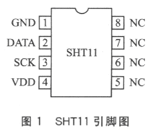 溫濕度傳感器SHTll集溫度傳感器和濕度傳感器于一體,因此采用SHTll進(jìn)行溫濕度實(shí)時(shí)監(jiān)測(cè)的系統(tǒng)具有精度高、成本低、體積小、接口簡(jiǎn)單等優(yōu)點(diǎn);另外SHTll芯片內(nèi)部集成了14位A/D轉(zhuǎn)換器,且采用數(shù)字信號(hào)輸出,因此抗干擾能力也比同類芯片高。該芯片在溫濕度監(jiān)測(cè)、自動(dòng)控制等領(lǐng)域均已得到廣泛應(yīng)用。