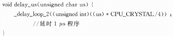 通過以上宏定義,可以實(shí)現(xiàn)SCK和DATA總線的各種輸入和輸出狀態(tài)。為了模擬該二線串行數(shù)字協(xié)議,還需要一個(gè)延時(shí)函數(shù)。WINAVR庫(kù)函數(shù)提供了一個(gè)延時(shí)函數(shù)_delay_loop_2(unslgned char s),該延時(shí)函數(shù)運(yùn)行用4個(gè)時(shí)鐘周期,所以白定義延時(shí)1μs函數(shù)可以定義如下:#deftne CPU_CRYSTAL 7.3728